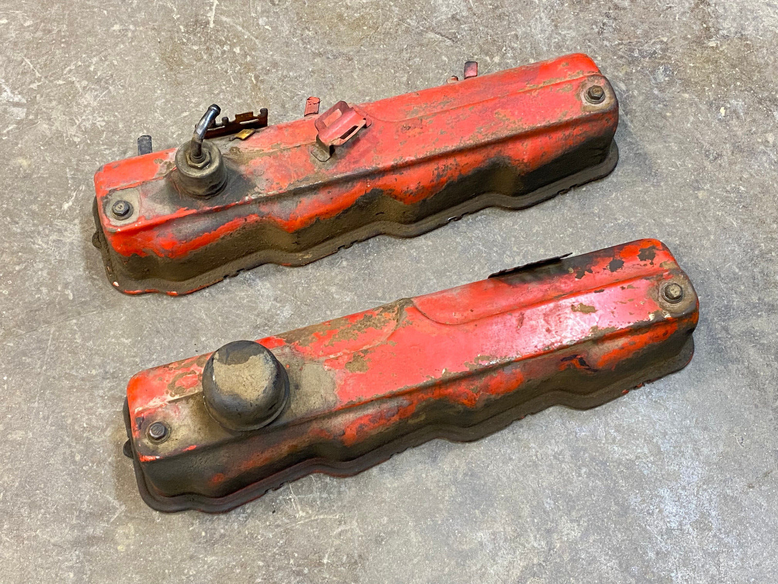 Holley Gm Muscle Series Zz6 Vortec Center Bolt Valve Cover Pair Sbc Factory Orange Gm Performance Motor